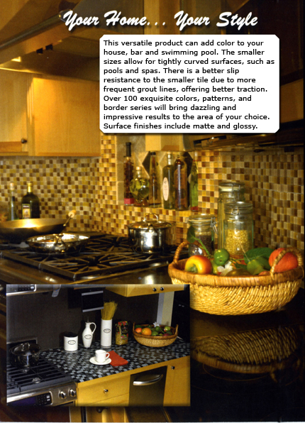 ranging from 1/2-inch x 1/2-inch up to 1-foot x l-foot. Custom designs reflect